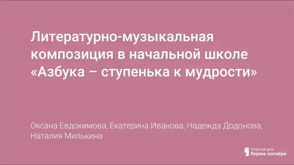 Литературно-музыкальная композиция в начальной школе проводится в рамках проекта «Азбука – ступенька к мудрости» по окончанию букварного периода обучения грамоте. Учащиеся демонстрируют свои знания по чтению: умение читать, рассказывать стихи, разгадывать ребусы. Представлены сценарий праздника и презентация.