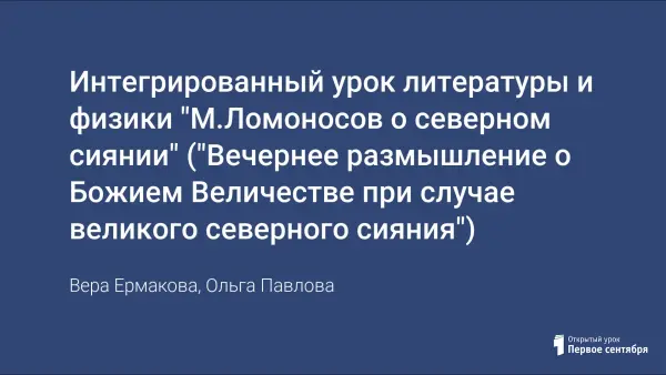 Интегрированный урок литературы и физики "М.Ломоносов о северном сиянии" ("Вечернее размышление о Божием Величестве при случае великого северного сияния")