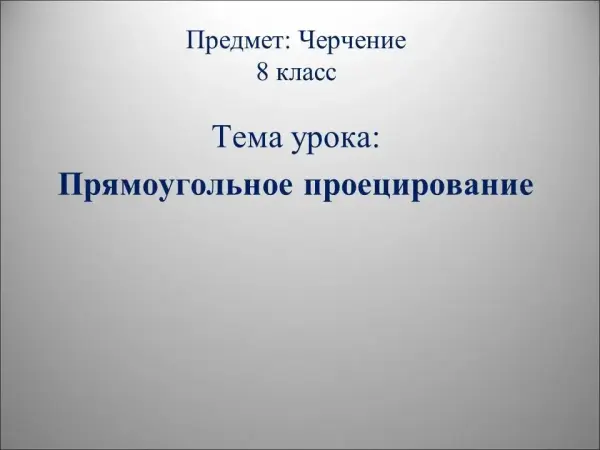 В разработке подробно и последовательно представлен материал урока «Прямоугольное проецирование» в доступном понимании для учителя и учащихся.