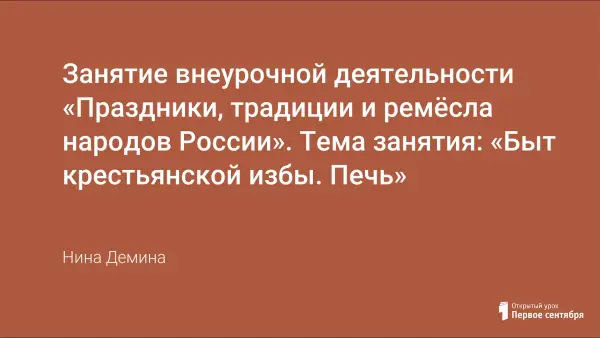 Цель занятия: формирование представлений детей о быте русских крестьян; исследование истории русского крестьянского быта; формирование уважения к русской народной культуре.