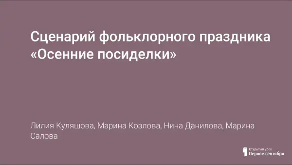 Цель мероприятия: проведение фольклорного праздника «Осенние посиделки», формирование интереса к традициям русского народа.