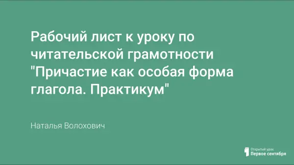 Представлен Рабочий лист к уроку по читательской грамотности "Причастие как особая форма глагола. Практикум".