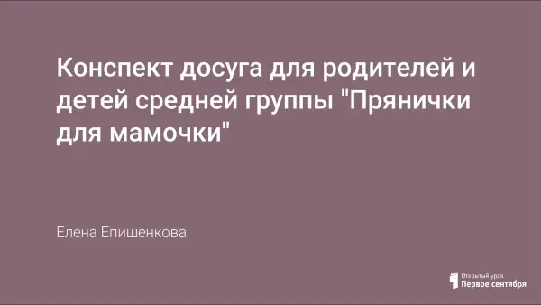 Цель мероприятия: способствовать созданию положительных эмоциональных переживаний детей и родителей от совместного празднования мероприятия. Задачи: расширение представления детей о празднике «День матери»; воспитывать уважительное отношение к маме, желание порадовать ее; развивать коммуникативные навыки между детьми и взрослыми; знакомство с вырезными пряниками и приемами их украшения.
