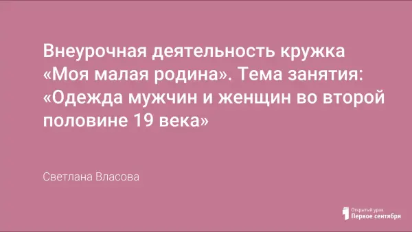 Цель занятия: познакомить с одеждой дворян второй половины 19 века и дать представление о моде той эпохи.