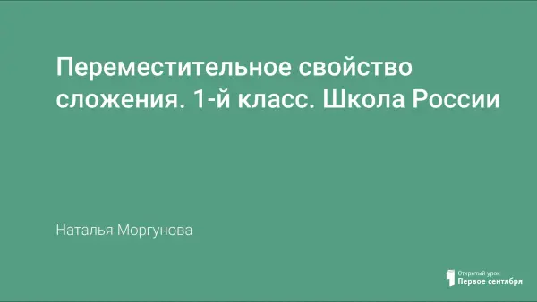 На уроке учащиеся: познакомятся с переместительным свойством сложения, тем самым расширив знания об операции сложения; будут учиться применять полученные знания на практике при решении примеров; закрепят навыки счета в пределах десяти, навыки решения задач. Урок развивает в детях способность логически мыслить, развивает речь, внимание; воспитывает в детях трудолюбие, аккуратность, усидчивость, способствует развитию интереса к предмету математики