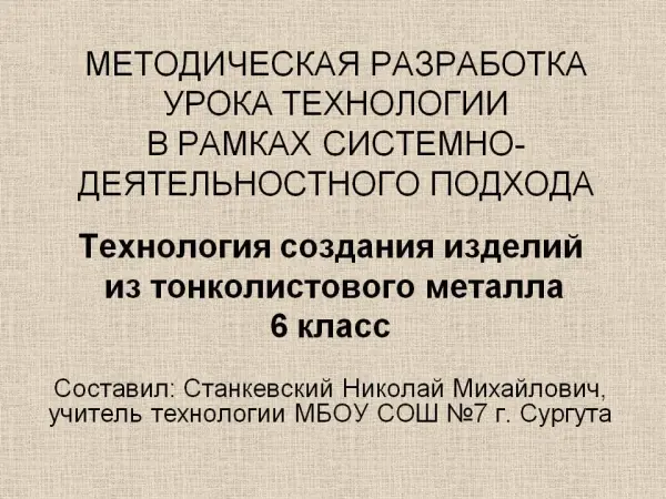 Урок-практикум с обучающими стендами, наглядно отражающими процесс изготовления кузова для игрушечного автомобиля из тонколистового металла, сопровождается презентацией.