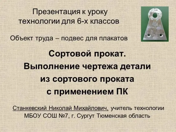 ТКУ по теме: «Сортовой прокат. Выполнение чертежа детали из сортового проката с применением ПК»