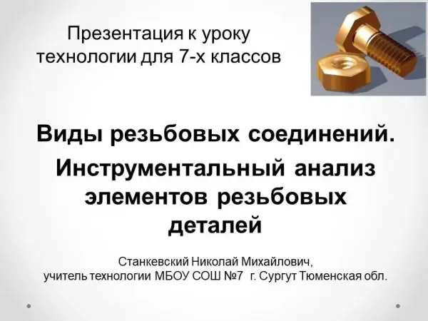 Виды резьбовых соединений. Инструментальный анализ элементов резьбовых деталей