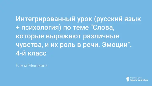 Интегрированный урок (русского языка и психологии) в 4-м классе направлен на знакомство с междометиями; взаимосвязь со средней школой; актуализация у детей представлений об эмоциях, способствующих открытому проявлению эмоций социально-приемлемыми способами; закрепление у детей навыков использования междометий в своей речи.