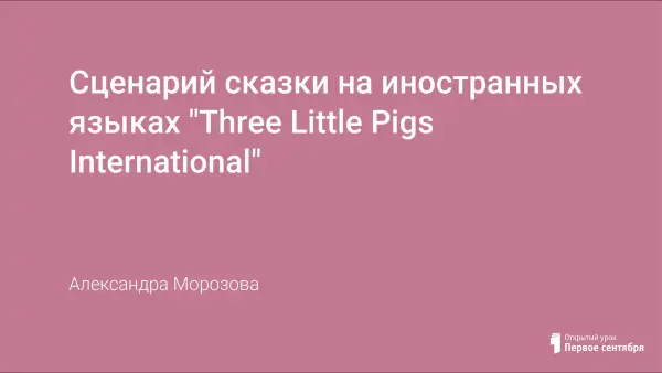 Сценарий традиционной сказки претерпел некоторые изменения: в сказку был введен рассказчик (Бабушка), повествующий своим внукам сказку о трёх поросятах; братья-поросята заговорили на разных иностранных языках, т.к. жили долгое время в разных странах и в связи с этим испытывали трудности в общении друг с другом. Но совместно пережитые невзгоды (нападения Волка на них и их жилища) укрепили их дружбу, а язык дружбы понятен всем и каждому.
