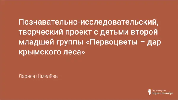 Дети не имеют знаний о бережном отношении к природе родного края и навыков правильного поведения в природе, еще не сформировано экологическое сознание, а основы его закладываются в дошкольном возрасте. Цель проекта: формирование представлений о первых цветущих растениях крымского леса – первоцветах, опыт экологически грамотного поведения детей в природе.