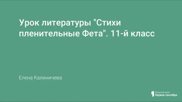 Урок даёт возможность обучающимся за короткое время составить представление об основных направлениях творчества Фета и особенностях его поэзии. На уроке акцентируется внимание на нескольких наиболее ярких его произведениях. Обучающиеся делают сообщения на основе самостоятельных наблюдений над текстами, таким образом демонстрируя свои аналитические возможности и развивая монологическую устную речь. Используется презентация.