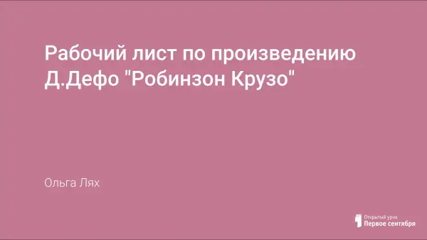Рабочий лист по произведению Д.Дефо «Робинзон Крузо» может быть использован как на уроке, так и в качестве домашнего задания, направлен на проверку самостоятельного чтения учащихся. Виды деятельности обучающихся: отвечать на вопросы, пересказывать (кратко, подробно, выборочно) главы повести, уметь характеризовать героев повести, анализировать детали; высказывать своё отношение к героям произведения. Организация с помощью рабочего листа самостоятельной деятельности школьников соответствует требованиям Федеральной рабочей программы ООО.