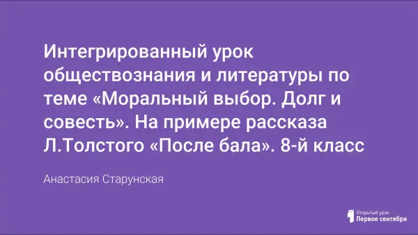 Цели урока: знать такие понятия, как личность, мораль, нравственность, долг, совесть, честь, любовь; знать текст литературного произведения и применять в практической деятельности; показать связь предметов обществознания и литературы; развивать умение логически мыслить и делать выводы; умение определять свою жизненную позицию с точки зрения обществоведческой и жизненной; воспитывать духовно-нравственного человека.