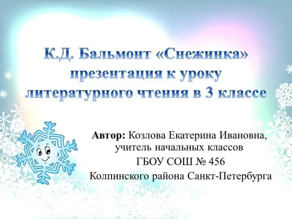 К.Д.Бальмонт. "Снежинка". Методическая разработка урока литературного чтения в современной начальной школе в свете ФГОС. 3-й класс