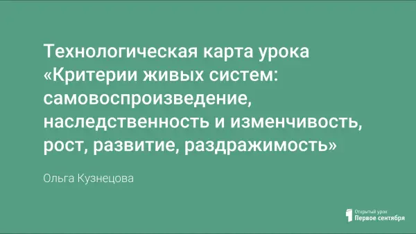 Цели урока: обобщить и систематизировать у учащихся знания о свойствах живых систем: самовоспроизведение, наследственность, изменчивость, рост и развитие; формировать научное мировоззрение о единстве живой и неживой природы, бережного отношения к ней.