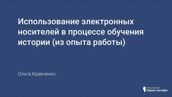 Главная задача современной школы – дать будущим гражданам нашей страны глубокие и прочные знания по основам наук, в частности – по истории; учить применять их на практике. В начале XXI века продолжается активный поиск как традиционных, так и новых форм и методов обучения, прежде всего это относится к использованию электронных носителей. Именно при использовании таких современных средств обучения можно добиться реализации главной цели образования – сформировать и воспитать человека XXI столетия.