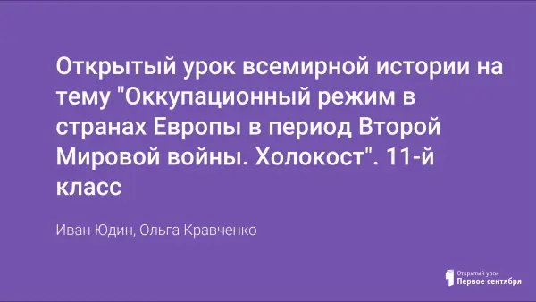 Открытый урок всемирной истории на тему "Оккупационный режим в странах Европы в период Второй Мировой войны. Холокост". 11-й класс