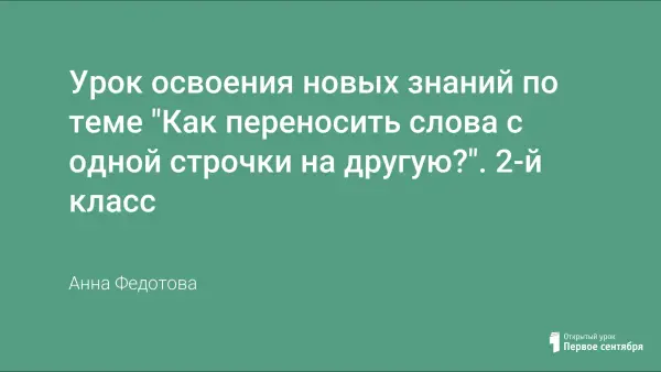 На уроке дети повторяют правила переноса слов; у детей формируется умение переносить слова с одной строки на другую. Урок разработан с деятельностным подходом с обязательным включением УУД.