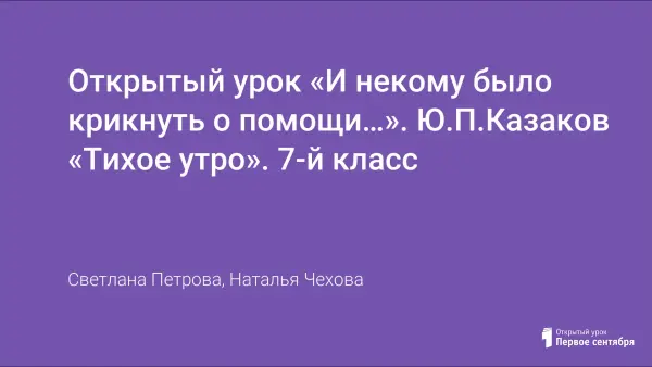 Открытый урок «И некому было крикнуть о помощи…». Ю.П.Казаков «Тихое утро». 7-й класс