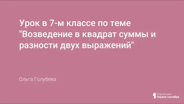 На уроке учащиеся выводят формулу квадратов суммы и разности двух чисел, формируется умение учащихся практически применять эти формулы для упрощения выражений.