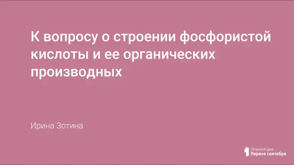 Выдающийся химик-органик А.Е. Арбузов, будучи молодым ученым, самостоятельно выбирает в качестве тематики своих научных исследований строение фосфористой кислоты и ее производных. Успех работы предопределила идея А.Е.Арбузова решать вопрос о строении фосфористой кислоты через ее органические производные.