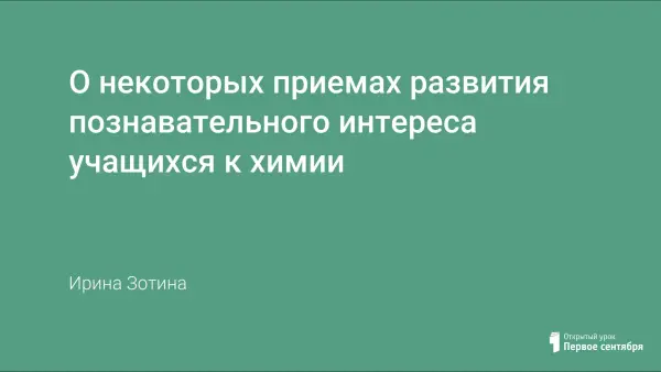 В основе формирования познавательного интереса к изучению химии лежит расширение спектра учебно-методических средств обучения: переструктурирование учебного материала, проблемный и имеющий практическую направленность химический эксперимент, внедрение активных форм обучения и информационных технологий.