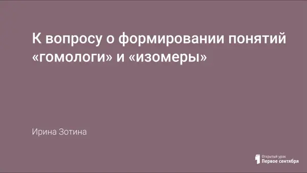 Изучение органической химии требует формирования понятий «гомологи» и «изомеры». Знакомство с классами органических соединений целесообразно начинать с составления систематизирующих таблиц изучаемых гомологических рядов, содержание которых позволит наглядно проиллюстрировать явление структурной изомерии, сформировать понятие «гомолог». Работа с таблицами помогает освоить некоторые понятия органической химии, формирует представление об общности химических явлений.