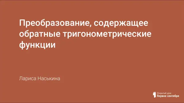 Цели урока: систематизировать знания об обратных тригонометрических функциях при упрощении выражений; развитие познавательного интереса через специальные задания; воспитание логически мыслящей личности.