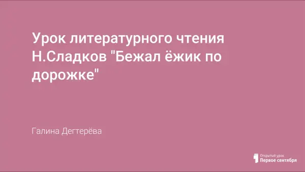 Урок составлен с использованием справочника «Моя шкатулка», авторы: О.Н. Бершанская, Г.Д. Дегтерева. Цель занятия: формирование умения определять главную мысль изучаемого произведения с помощью наблюдений за выразительными средствами, используемыми писателем, на основе знакомства с рассказом Н.Сладкова «Бежал ёжик по дорожке».