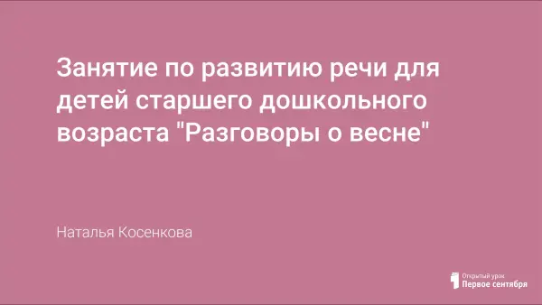 Занятие по развитию речи для детей дошкольного возраста, на котором обобщаются и расширяются знания детей о весне. В ходе занятия развивается монологическая и диалогическая речь детей; совершенствуются умения в выразительном чтении стихотворений наизусть; совершенствуются умения выполнять речевые упражнения с имитацией движений; развивается память, внимание, наглядно-образное и логическое мышление.