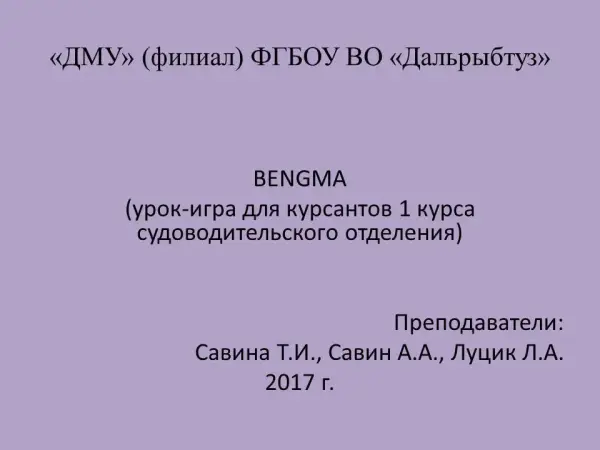 Комбинированный урок (Biology, English, Mathematics) – урок-игра ВЕNGMA для курсантов 1-го курса судоводительского отделения