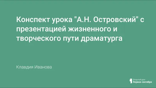 Первый урок по теме с презентацией жизненного и творческого пути драматурга призван познакомить учащихся с новым автором, определить своеобразие его творчества, выражающееся в отражении проблем эпохи, показать новаторство и традиции в творчестве А.Н. Островского, своеобразие его стиля.