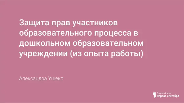 В статье представлен опыт работы по теме защиты прав участников образовательного процесса в дошкольном образовательном учреждении. Рассматриваются основные направления работы уполномоченного МДОУ детский сад № 73 г.о. Орехово-Зуево.