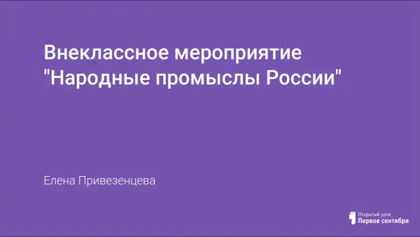 Внеклассное мероприятие можно проводить как клубный час в группе продленного дня или как школьное мероприятие среди младших школьников. Учащимся в доступной форме (в виде театрального представления) излагается материал о народных промыслах России, об истории появления деревянных изделий из Хохломы, расписной посуды из Гжели, матрёшки. Используется музыкальное сопровождение, презентация, изделия народных промыслов.