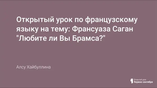 Предлагаю вниманию разработку открытого урока французского языка в 10-м классе на тему: Франсуаза Саган "Любите ли Вы Брамса?"