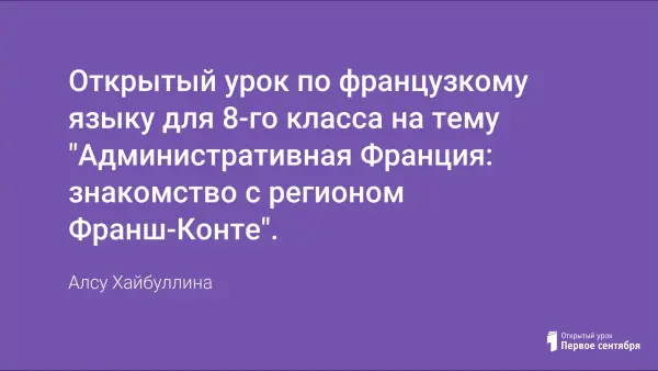 Предлагаю вашему вниманию открытый урок по французскому языку для 8-го класса на тему «Административная Франция: знакомство с регионом Франш-Конте». На уроке разговор пойдет об административной системе Франции, об удивительном регионе Франш-Конте. Ребята совершат заочную экскурсию в чудесный средневековый замок “Chateau de Joux”, совершенствуя свои знания и умения монологической и диалогической речи.