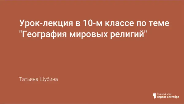 Изучение географии мировых религий и цивилизаций в курсе географии класса повышает познавательный, нравственный и воспитательный потенциал предмета. Сведения по философии, морали, искусству способствуют усвоению школьниками общечеловеческих ценностей, формируют у них нормы и правила цивилизованного общения. Главная задача урока: воспитание толерантности к различным культурам и верованиям.