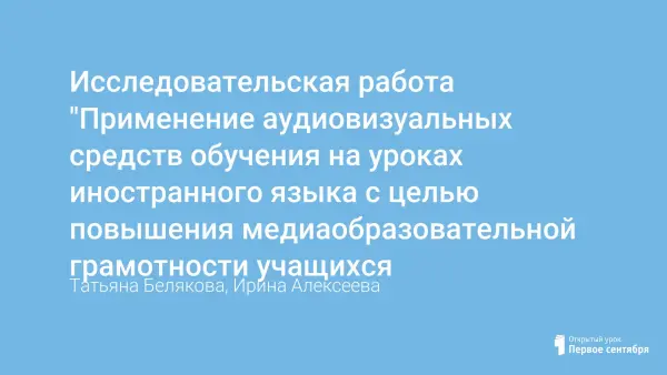 Исследовательская работа "Применение аудиовизуальных средств обучения на уроках иностранного языка с целью повышения медиаобразовательной грамотности учащихся