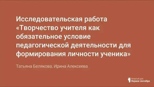 Исследовательская работа «Творчество учителя как обязательное условие педагогической деятельности для формирования личности ученика»