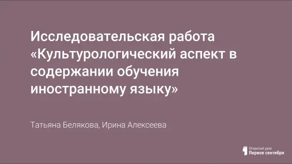 Исследовательская работа «Культурологический аспект в содержании обучения иностранному языку»
