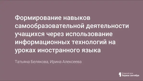 Формирование навыков самообразовательной деятельности учащихся через использование информационных технологий на уроках иностранного языка