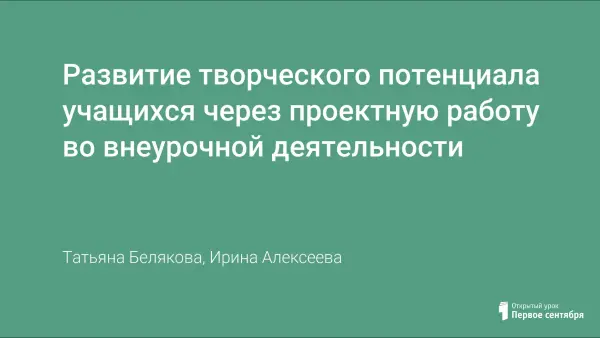 Развитие творческого потенциала учащихся через проектную работу во внеурочной деятельности
