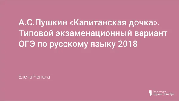 А.С.Пушкин «Капитанская дочка». Типовой экзаменационный вариант ОГЭ по русскому языку 2018