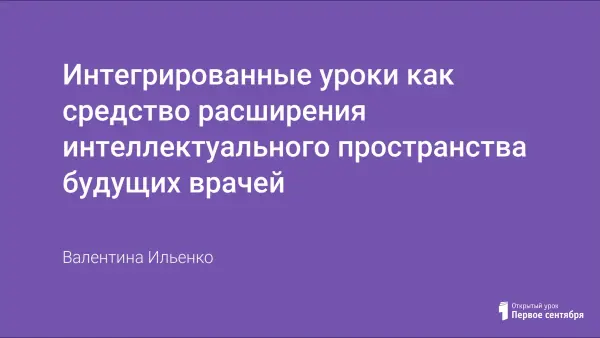 На факультете довузовской подготовки Тихоокеанского государственного медицинского университета проводятся интегрированные уроки как средство расширения интеллектуального пространства будущих врачей. Эти уроки формируют чувство коллективизма, взаимопомощи, корпоративности. При подготовке уроков создаются предметные рабочие группы из учащихся, которым поручается разработать основные положения, они же потом и привлекают ряд других учащихся и преподавателей к подготовке урока.