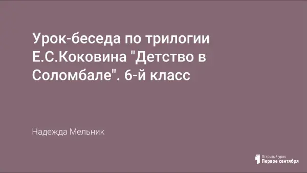 Урок-беседа по трилогии Е.С. Коковина рассчитана на два спаренных урока. Нетрадиционная форма способствует развитию устной речи, активизирует мыслительную деятельность, прививает интерес к творчеству писателя Севера. Использование презентации повышает познавательный интерес к произведениям о родном крае.