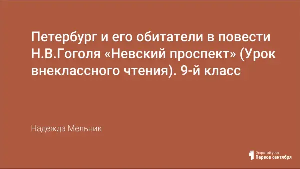 Цель урока: показать учащимся, как в повести Гоголя «Невский проспект» нарисован образ призрачного, обманчивого города, чуждого мечтательному человеку; выяснить суть противопоставления художника Пискарева и поручика Пирогова.