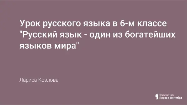 Урок «Русский язык – один из богатейших языков мира» воспитывает у школьников любовь к родному языку, патриотизм, способствует формированию культуры речи. На уроке используются индивидуальные, парные, групповые формы работы, что позволяет реализовать личностно ориентированный подход. В разработку включена агитбригада «Язык мой – друг мой».