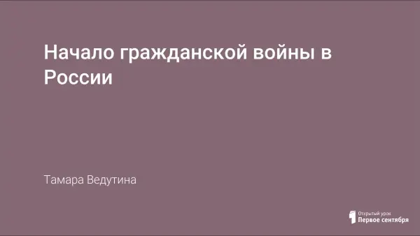 Цели урока: сформировать у учащихся представление об основных причинах Гражданской войны и ее основных этапах; рассмотреть события первого периода гражданской войны и начало формирования Белого движения; показать эволюцию взглядов Ленина на принцип построения вооруженных сил; продолжить формирование умений работы с историческими документами.