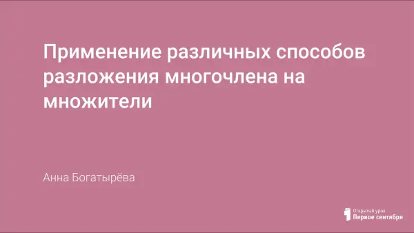 Данный урок создан для учащихся 7-го класса с целью систематизировать, расширить и углубить знания, умения учащихся, применять различные способы разложения многочлена на множители. Сформировать умение применять разложение многочлена на множители путём комбинации различных приёмов. Реализовать знания и умения по теме: «Разложение многочлена на множители» для выполнения заданий и базового уровня и заданий повышенной сложности.